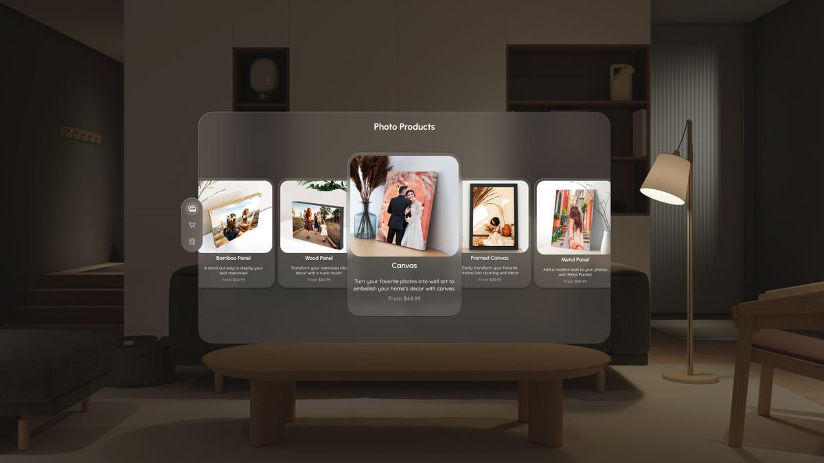 Customers can artistically curate and visualize photos in an immersive three-dimensional space, and transform digital memories into personalized wall art and canvases using Apple Vision Pro